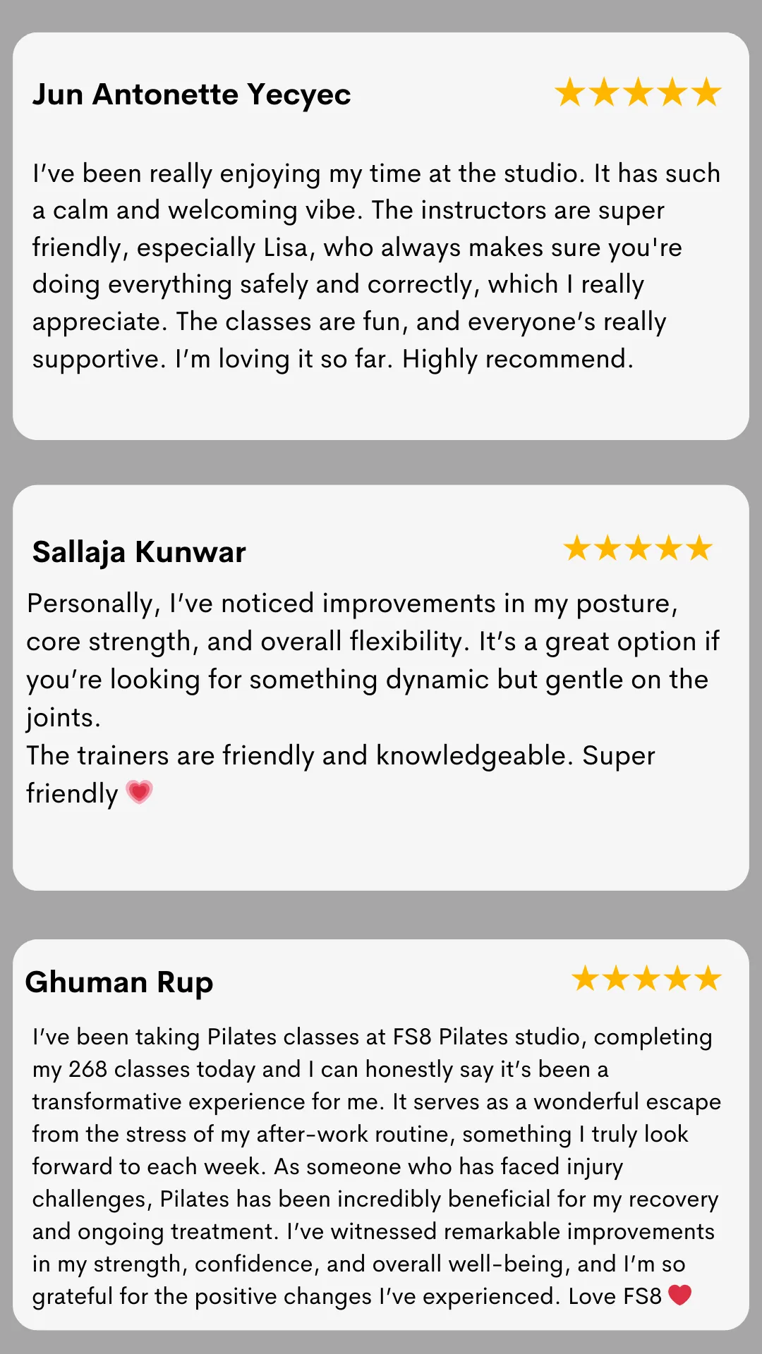 A proven system — The FS8 Pilates Effect, guiding you from first class to consistency